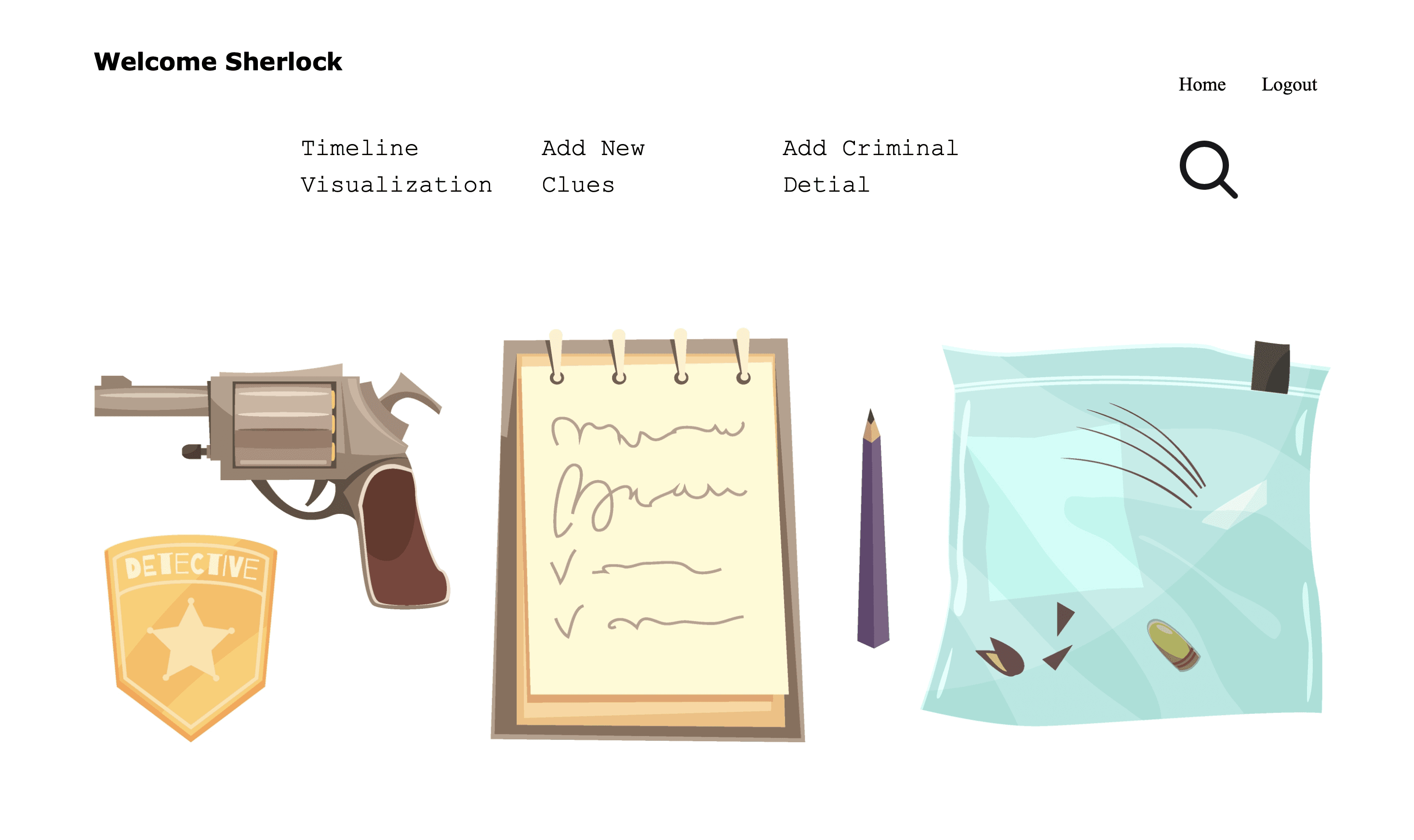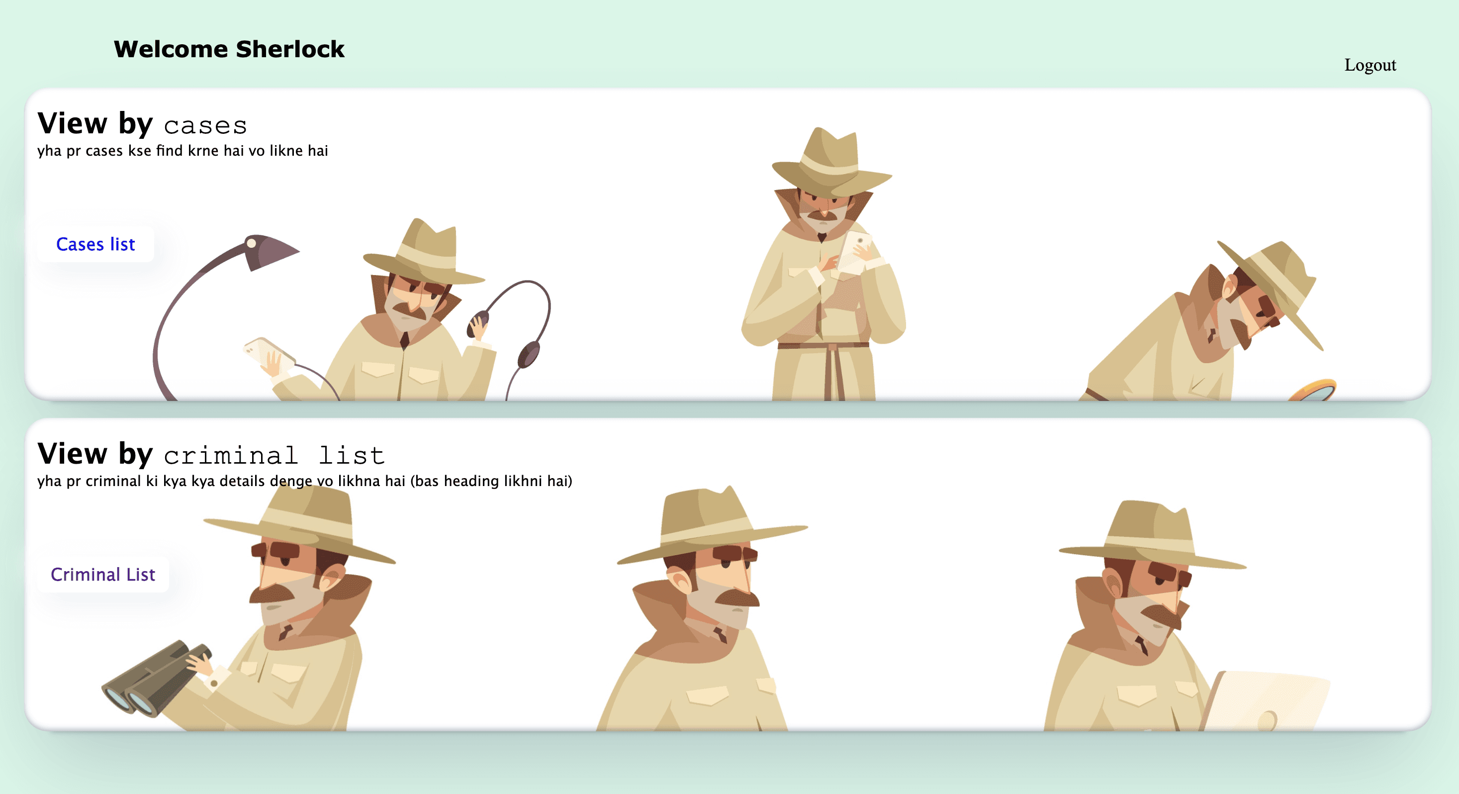 It features two main methods for case solving: navigating through a list of cases or identifying suspects from a criminal list. Additionally, the platform allows users to add new clues and criminals via interactive forms, making it a dynamic tool for anyone interested in detective work.